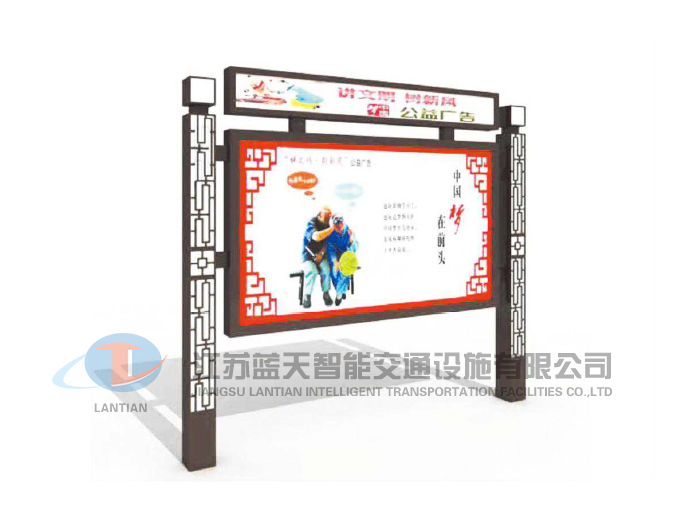是一家生產宣傳欄,候車亭,公交站臺,閱報欄,指路牌,廣告垃圾箱,滾動換畫燈箱等系列產品廠家!產品多達上百種,亦可根據客戶的需求加工制作各種型號、規格的產品。目前已經成功的向市場推出裝備有太陽能的各類產品,緊跟國家倡導“節能低碳”的環保政策。